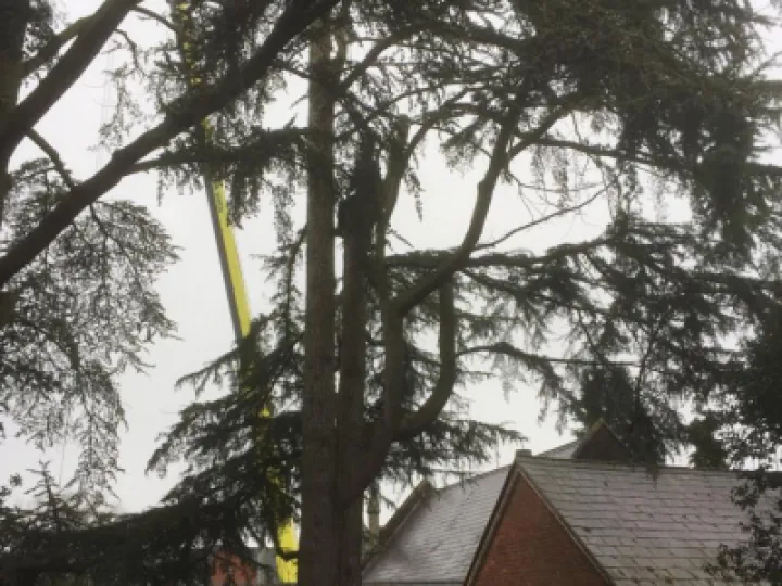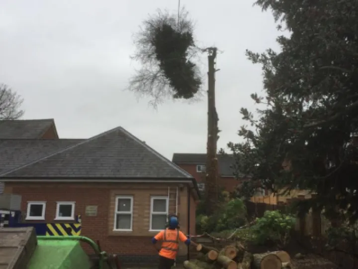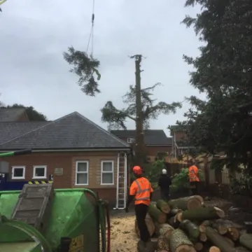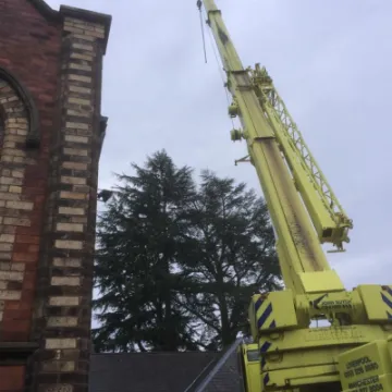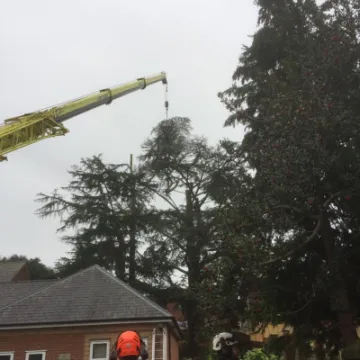Just a few months ago, we became aware that our Blue Atlas Cedar had a serious disease and, once we had we sought professional advice, we were told that this disease is irreversible and the tree would eventually start to drop limbs. The tree adjacent to it, a Deodara, had been planted at the same time and they had grown as one canopy. The other feature of this green Cedar tree was that it had a divided trunk which obviously weakens the strength of the tree and, in high winds without its "other half", would also be a threat to the surrounding buildings. These were serious health and safety issues not only for the chapel but for the surrounding houses too. Unfortunately, we were left with no alternative but to remove the danger and have the trees removed. As you may have seen, a huge yellow crane was needed for the mammoth task. What we have been able to do, however, is retain the history of these two great trees by keeping a substantial length of the trunk of each which we intend to have carved. These will then become a lasting focal point in our new garden as it develops into a more open and welcoming place for all ages to use for many years to come.